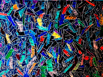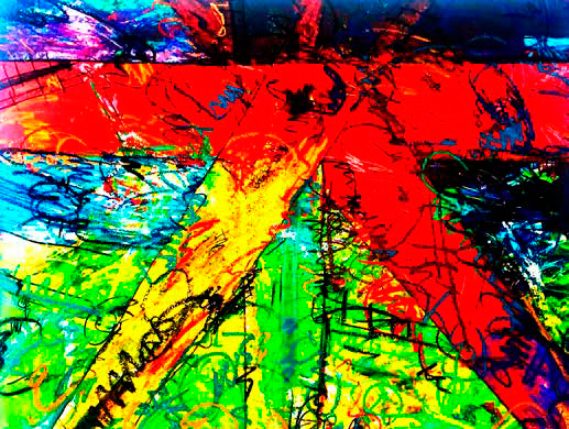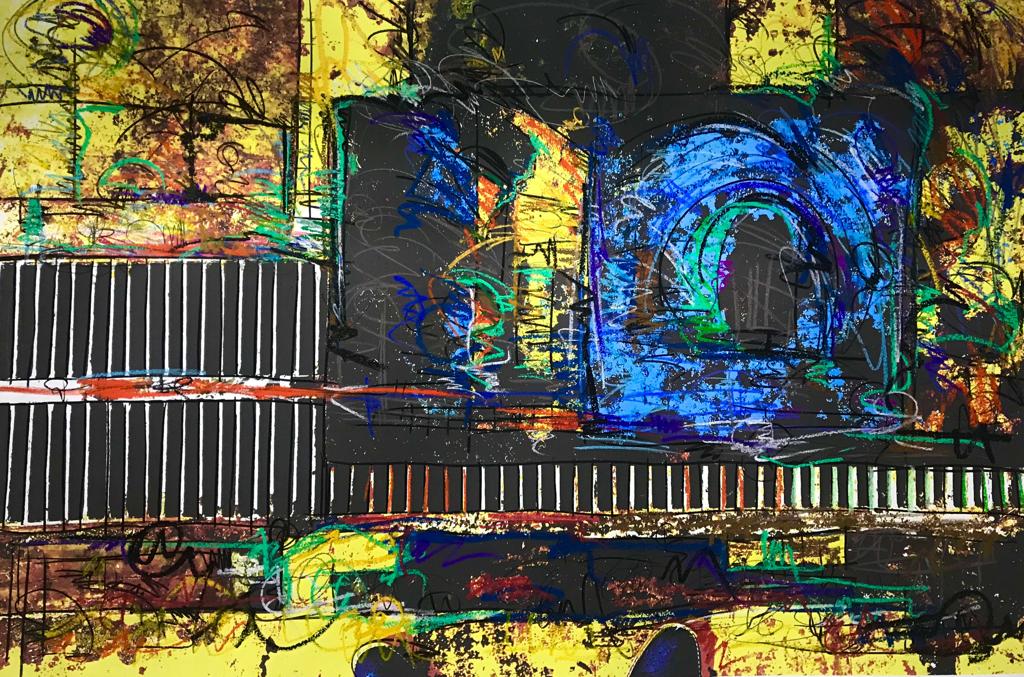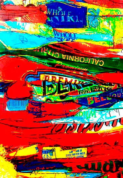 DISPONIBLE, impresión sobre canvas, óleo pastel y carboncillo, 134 x 134 cm