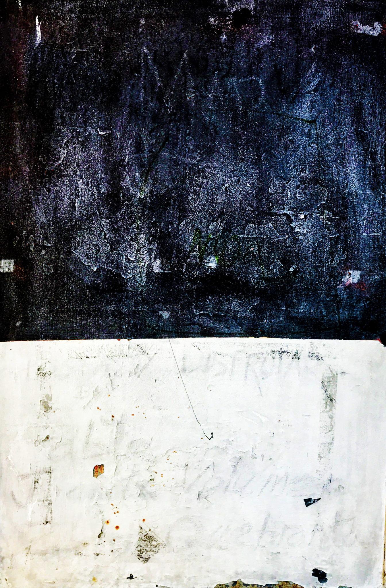 DISPONIBLE, impresión sobre canvas, óleo y carboncillo, 118 x 90 cm