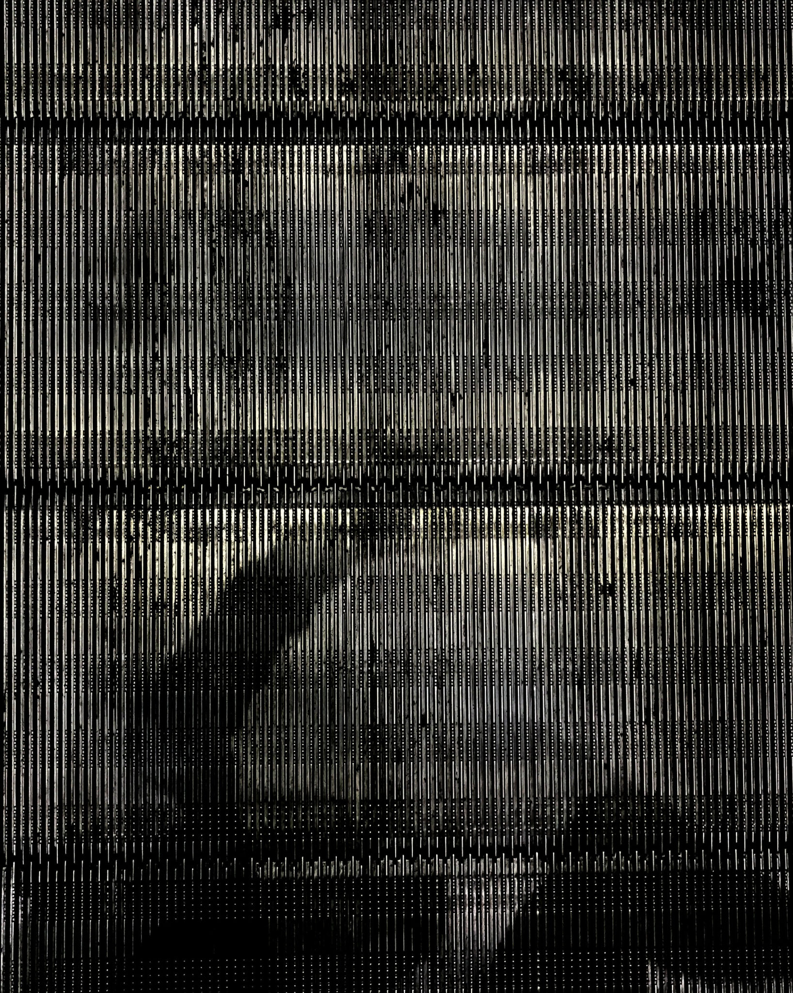 DISPONIBLE, impresión sobre canvas, óleo pastel y carboncillo, 204 x 134 cm